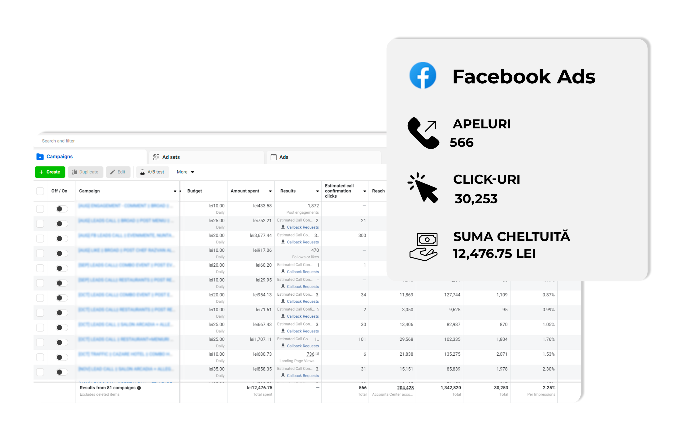 - Raportare: Am oferit rapoarte detaliate pentru a urmări progresul. Rapoartele au inclus date despre performanța reclamelor, costuri, rate de conversie și alte KPI-uri relevante, oferind o imagine clară asupra eficienței strategiilor noastre.
